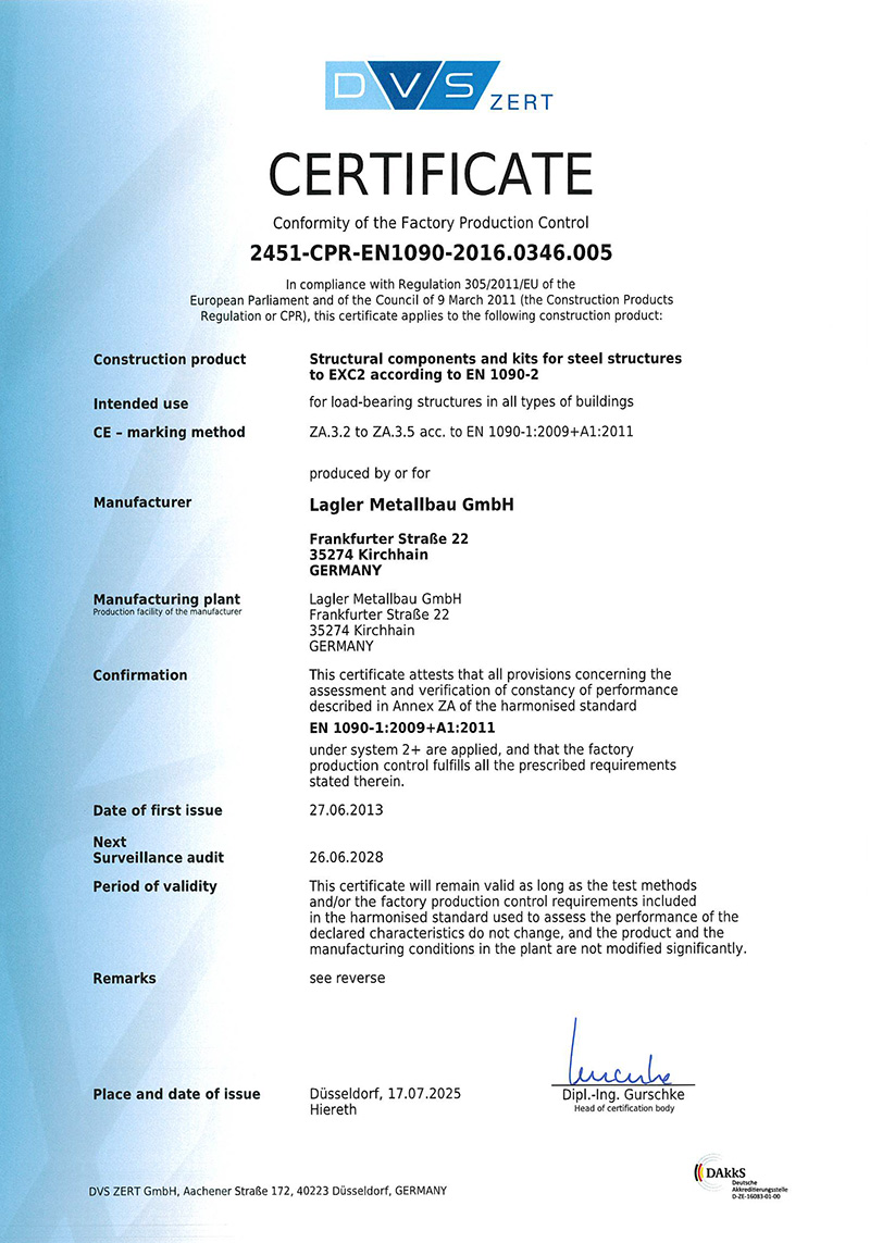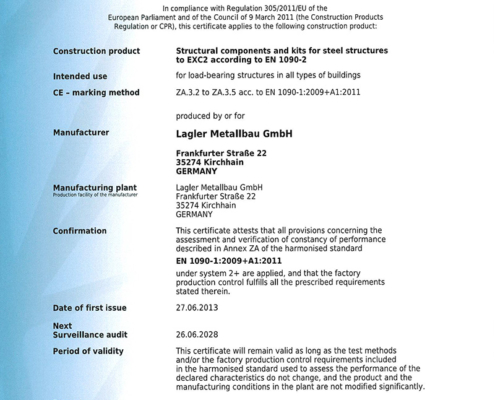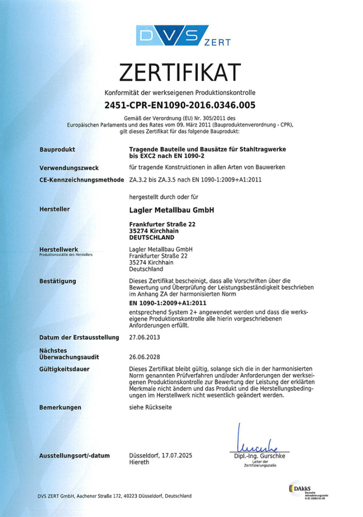 - Seit Juni 2013 zertifiziert nach Schweißnorm EN 1090